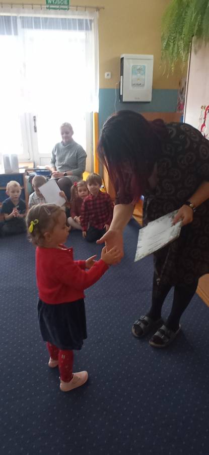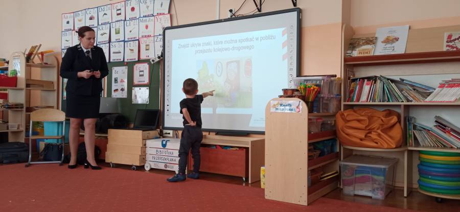 W październiku odwiedzili nas goście z Ochrony Kolei. Dzieci mogły dowiedzieć się jak bezpiecznie poruszać się w pobliżu torów, jak wyglądają znaki kolejowe i co one oznaczają. Dzieci miały możliwość zapoznania się z przedmiotami jakich używają Strażnicy Kolei. Oczywiście na zakończenie zajęć wszystkie dzieci zostały obdarowane niespodziankami.