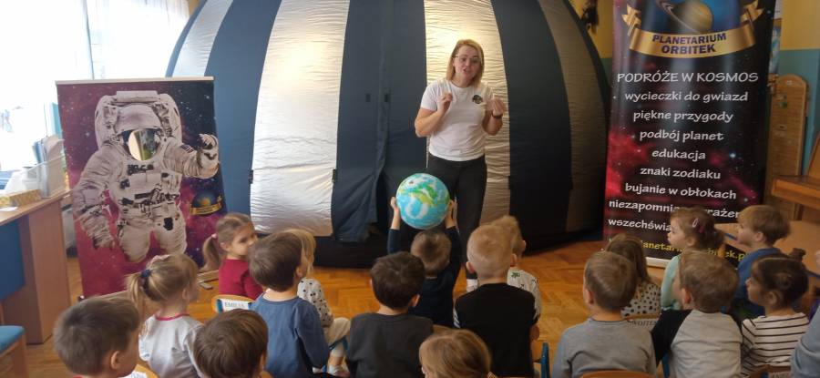 Dzieci z naszego Przedszkola uczestniczyły w warsztatach w kosmicznej kuli - Planetarium. Dzieci wybrały się w podróż w Kosmos, odwiedziły planety i dowiedziały sie jak powstał Wszechświat.