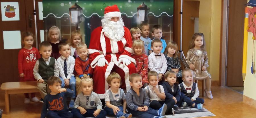 Dnia 5 grudnia do naszego Przedszkola przybył długo oczekiwany gość. Przedszkolaki powitały św. Mikołaja piosenką, tańcem i wierszem. Nasz Gość obdarował wszystkie dzieci prezentami.