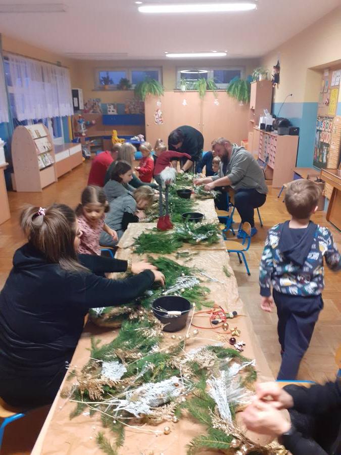 W naszym Przedszkolu po raz pierwszy odbyły się warsztaty florystyczne. Dzieci i Rodzice mogli wykonać piękną, świąteczną dekoracje. Pod czujmym okiem florystki dzieci i rodzice mogli nauczyć się jak od podstaw wykonać wieniec bożonarodzeniowy. Wszystkie materiały były z naturalnych gałązek.